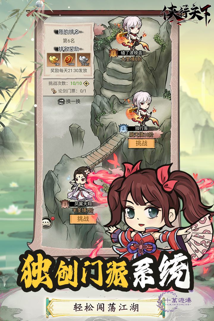 《侠行天下》是一款有趣的武侠修仙养成角色扮演游戏。游戏讲述了世界碰撞融合,为了生存,大侠们需要开拓团队成员不断探索奋斗的故事。开拓国队成员可以招募各世界侠客共同探索、同甘共苦,而后一起成长、建设府邸、炼制丹药、装备、灵饰灵宝,共同修炼功法秘籍等。伴随着实力提升,可探险灵武秘境、挑战名人堂、参与华山论剑、武林大会争雄、抵抗异域邪魔、参与天道试炼,破碎飞升登顶至尊。