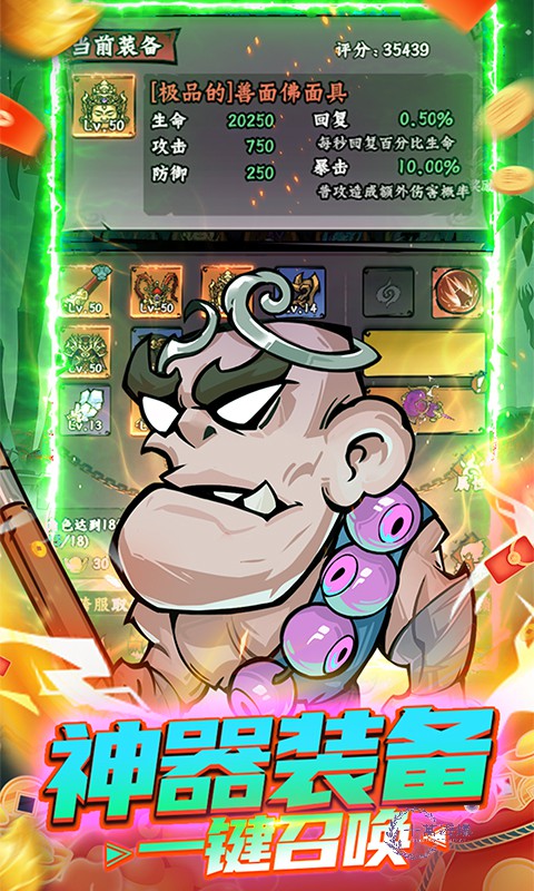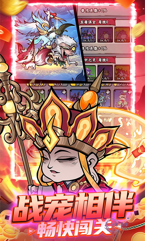 本游戏是一款玩法简单的放置类RPG游戏,基于西游记构建了一个虚拟世界,玩家可以扮演不同的取经人,获得耳熟能详的神兵法宝,学习各种神通法术,结识形态各异的同伴,在各种玩法中降妖除魔。