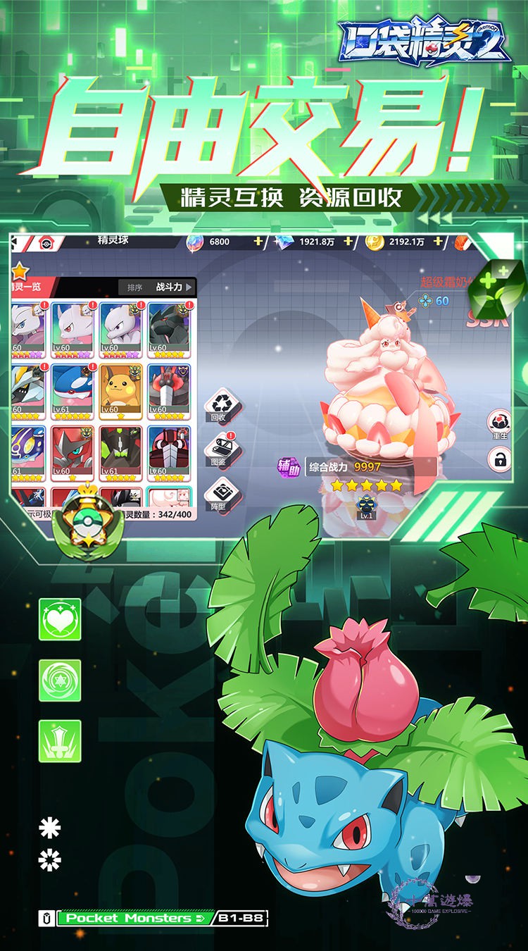 《口袋精灵2(送满星SP刷充)》是一款以口袋妖怪为主题,集宠物收集养成、策略对战、角色冒险为一体的手游,游戏采用了开放世界设计,玩家可以在游戏中自由探索、捕捉神兽精灵、进行战斗和完成任务,特色贸易功能,神兽、学习机、携带物自由交易!八大道馆,四大天王等你来战!